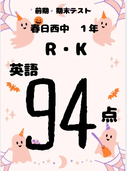 前期期末テスト成績アップ者紹介⑫西中1年のKくん。相変わらず英語はすごいですね~得意教科ですからね!次回も楽しみです👏https://musashijuku634.com/#夢咲志塾#むさし塾#春日市個別指導塾#個別指導塾#…