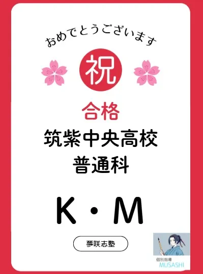 合格報告⑭博多工業高校に合格したTくん!合格おめでとう🌸なかなか自習に来なかったですが、家で頑張れていたということですね!良かったです!楽しい高校生活を送ってもらえたらと思います!さて、おかげ…